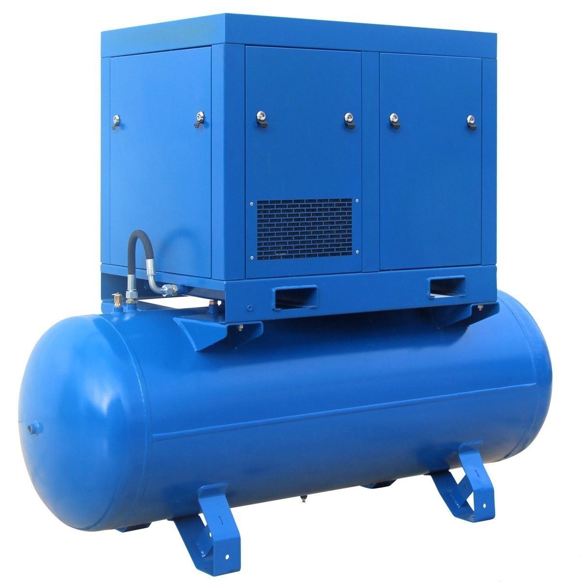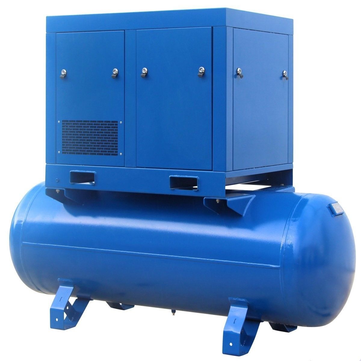 Стационарный винтовой компрессор АСО-ВК 22/8М2-500 производительностью 3520 л/мин и рабочим давлением 8 атм. Двигатель мощностью 22 кВт / 380 В связан с винтовым блоком ременным приводом. Объем ресивера 500 л. Температура воздуха на всасывании от 5 до 45 °С. Габариты 210х92х178 см., масса 860 кг.