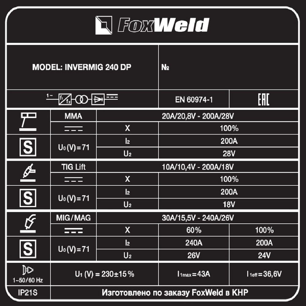Сварочные инверторы MIG-MAG Fox Weld INVERMIG 240 DP: характеристики